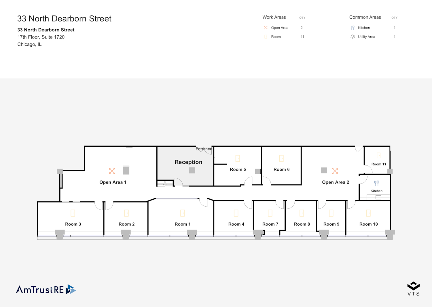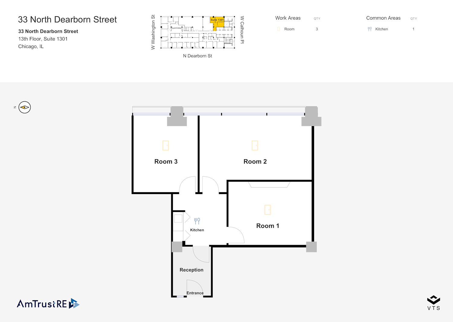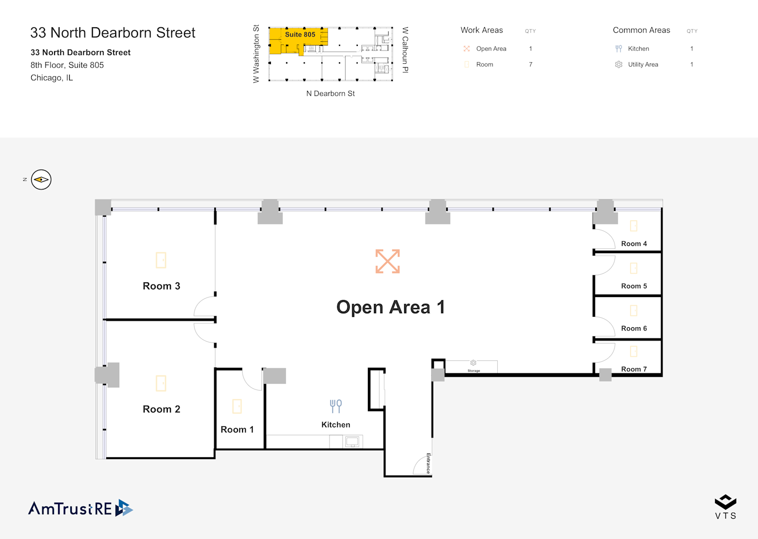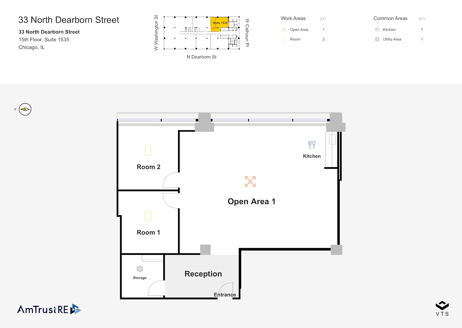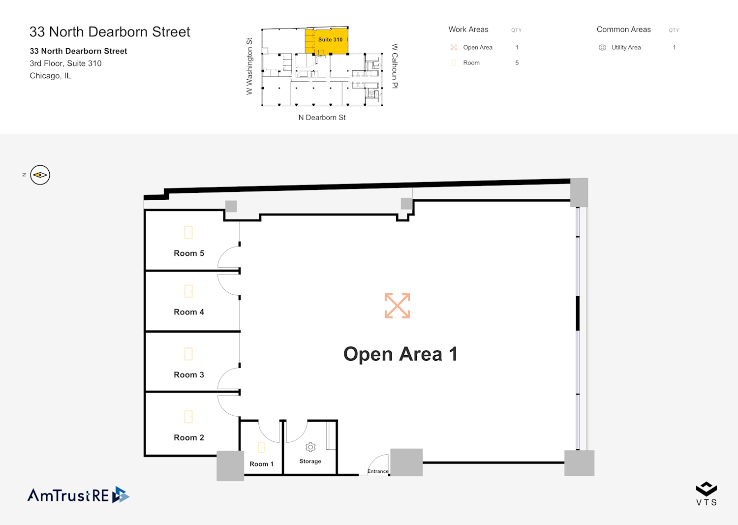 33 North Dearborn is among the only Class A boutique office buildings in Chicago’s Central Loop. Designed by revered architecture firm Skidmore, Owings & Merrill, 33 North Dearborn is a distinctive option for tenants across all industries. Tenants of 33 North Dearborn enjoy all the conveniences and amenities of a large office complex, within a smaller-scale environment. The building is centrally located within the functional necessities of downtown Chicago, such as a nearby L stop, the underground Pedway, the Daley Center, Block 37, and Millennium Park. With 13,000 square-foot floorplates and a side-loaded core, tenants achieve maximum identity and floor presence. The building also offers a full breadth of new amenities including an outdoor terrace, lounge, library, training room, and board room.