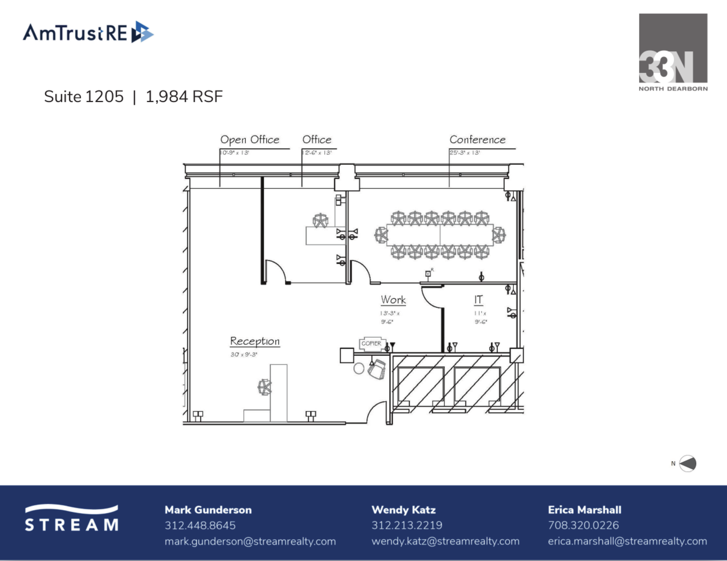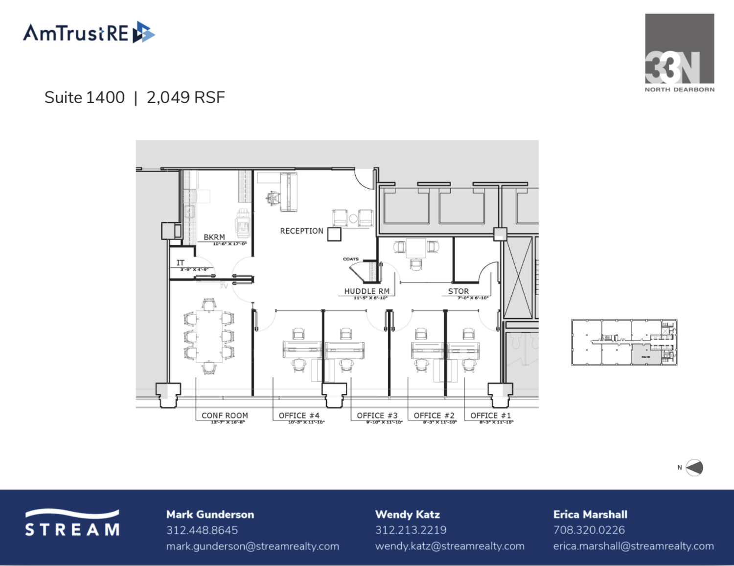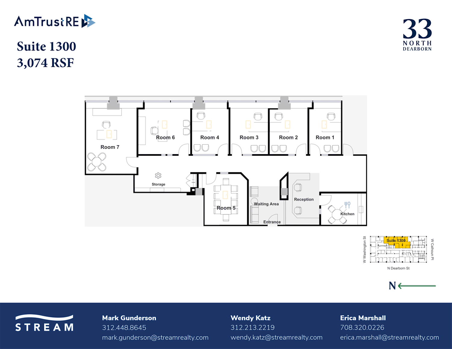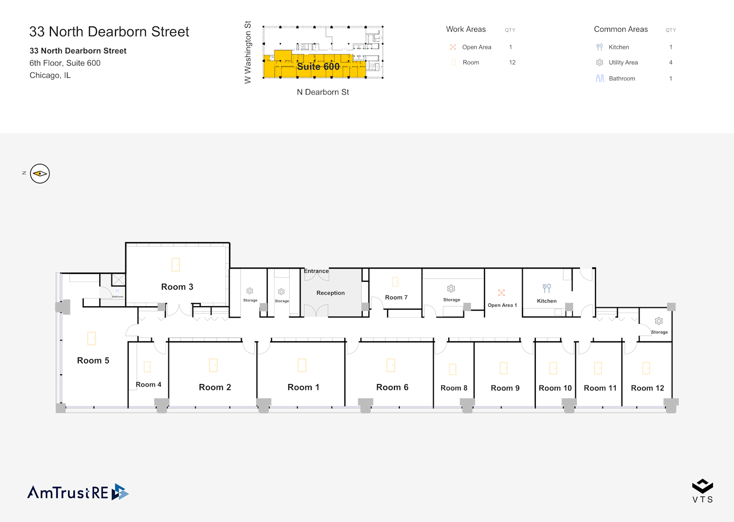 33 North Dearborn is among the only Class A boutique office buildings in Chicago’s Central Loop. Designed by revered architecture firm Skidmore, Owings & Merrill, 33 North Dearborn is a distinctive option for tenants across all industries. Tenants of 33 North Dearborn enjoy all the conveniences and amenities of a large office complex, within a smaller-scale environment. The building is centrally located within the functional necessities of downtown Chicago, such as a nearby L stop, the underground Pedway, the Daley Center, Block 37, and Millennium Park. With 13,000 square-foot floorplates and a side-loaded core, tenants achieve maximum identity and floor presence. The building also offers a full breadth of new amenities including an outdoor terrace, lounge, library, training room, and board room.